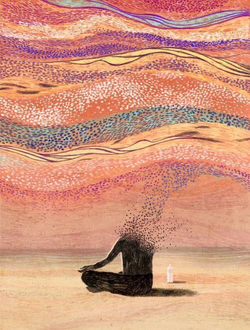 We have been using this technique recently in the class I facilitate. Once you have sat down in a comfortable posture, become aware of the sky and stars up above you and the earth beneath you, allow your awareness to become big and open like the sky above you, and vast solid and stable like the Earth beneath you.